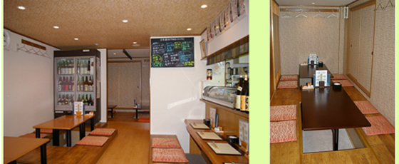 ▲カウンター6席と、4人席が2つ全席堀ゴタツです。 ▲奥はテーブルが3卓、18人までの宴会 ができます。