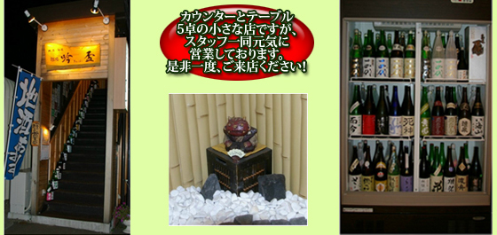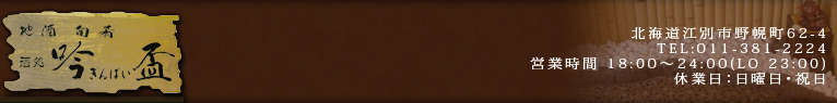 吟盃は常時約100種類の日本酒を揃える居酒屋です。 私は、日本酒と美味いものが大好きで、気が付けば「利き酒師」の資格を取って、こんなお店をはじめていました。 入手困難なお酒や、造りに拘った本物の日本酒を中心に、本格焼酎や果実酒も充実しています。 季節ごとの、旬の食材を使ったメニューも、多数ご用意しております。 お一人でも、カップルでも、お仕事仲間からファミリーまで、是非一度ご来店ください。